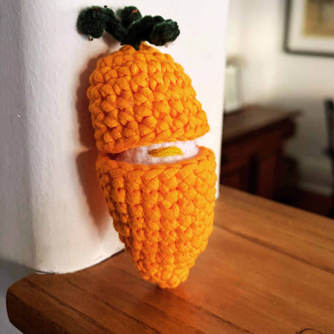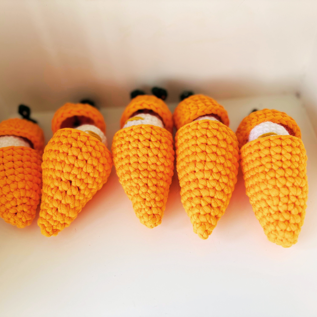 Carrot Crew came from the endless stream of crochet videos my algorithm keeps feeding me. I had been watching, saving, thinking maybe one day, and then suddenly I was making them.
